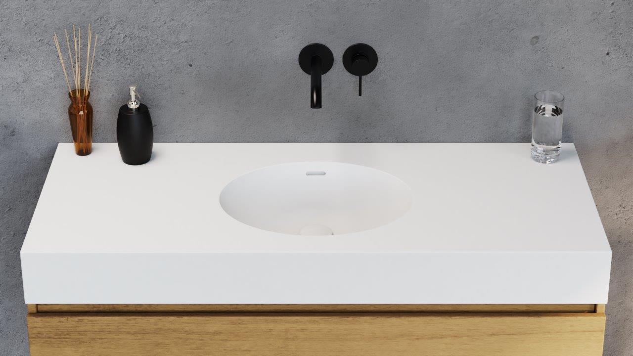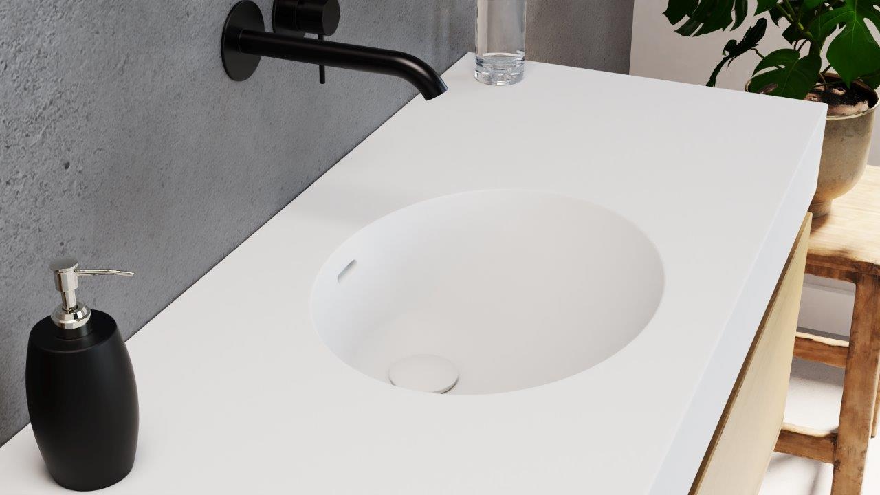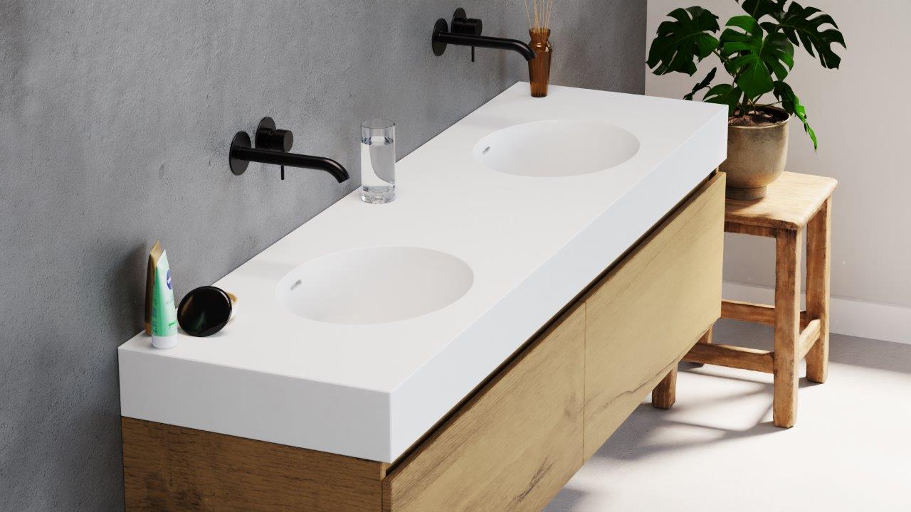 De Incollato Oval is te verkrijgen in twee afmetingen, waarbij het wastafelblad geheel op maat te vervaardigen is.